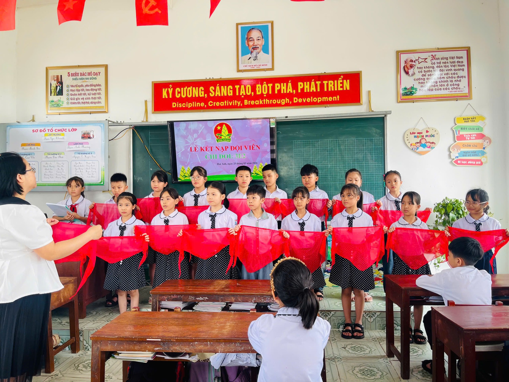 Từ hôm nay, các em chính thức trở thành đội viên – tự hào mang trên vai sắc đỏ thiêng liêng, sẵn sàng học tập, rèn luyện và làm nhiều việc tốt mỗi ngày!